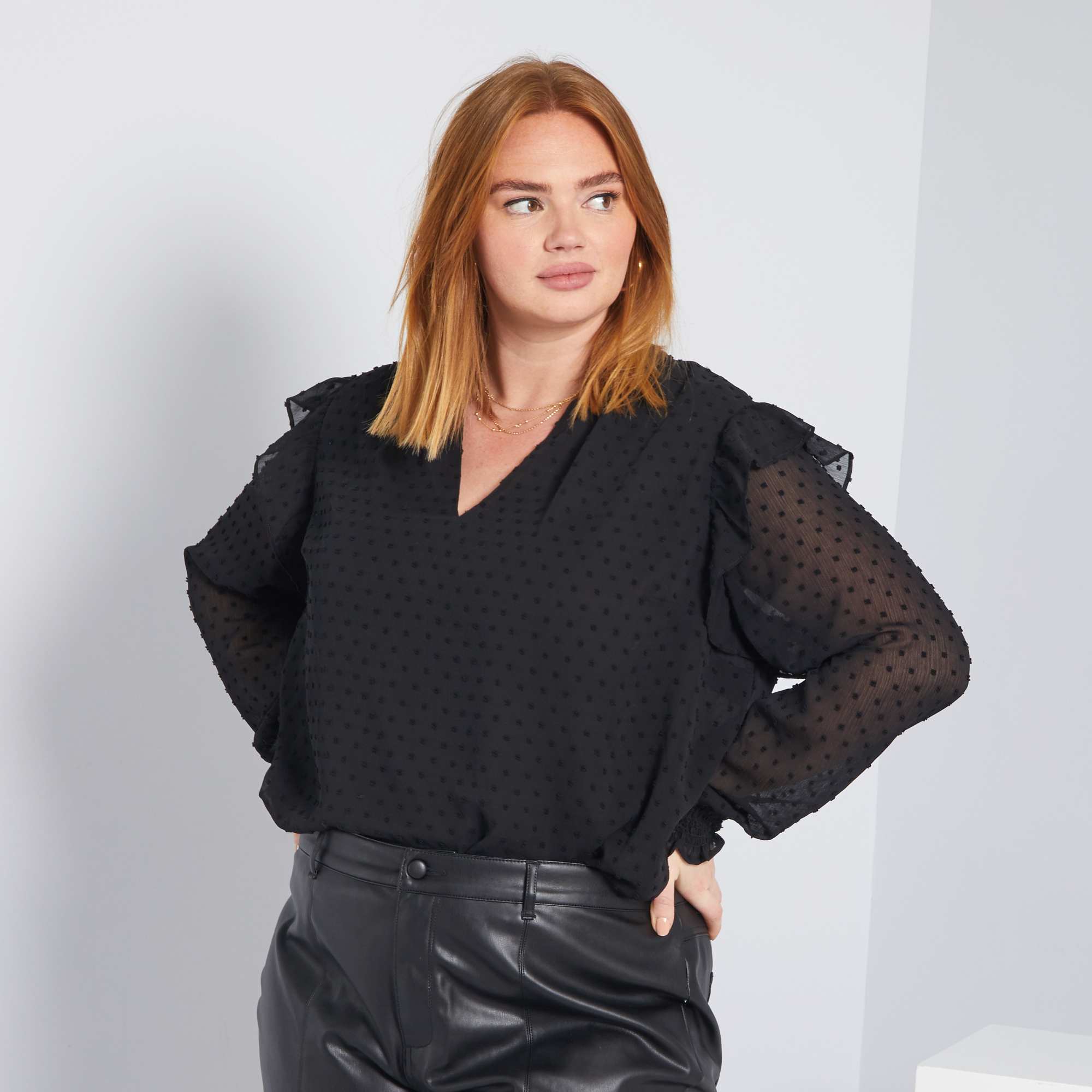 Blusa a ponto cheio e folhos