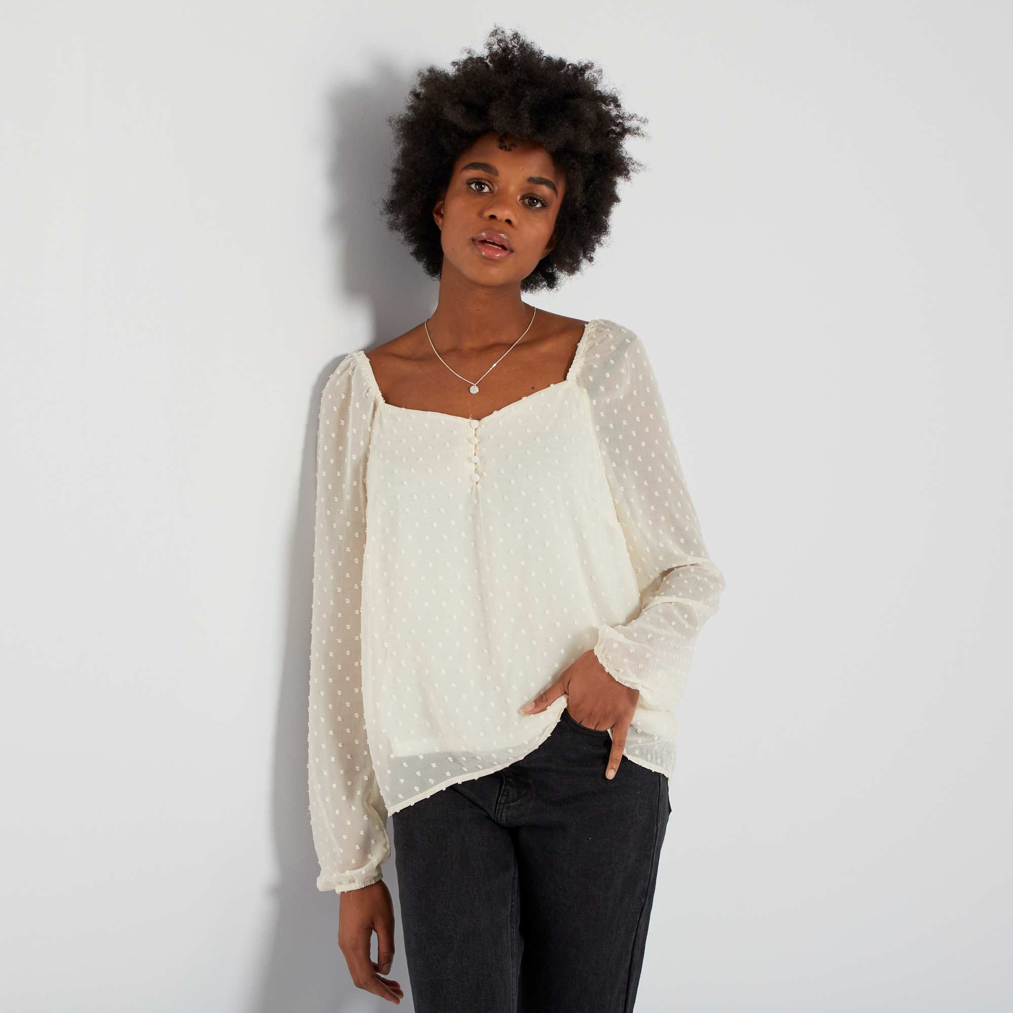 - Blusa em voile a ponto cheio