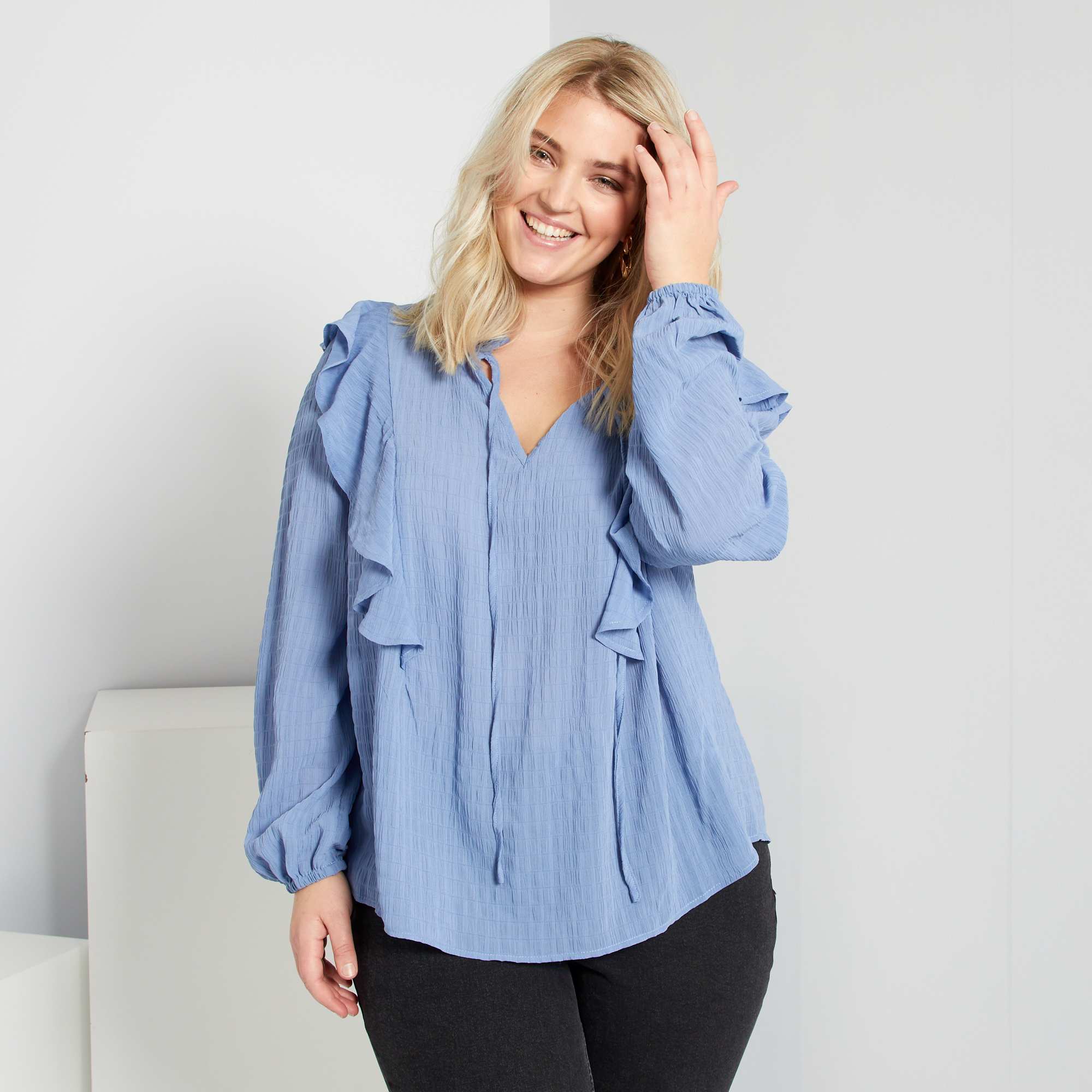 Uma blusa fluida com um material gofrado e leve!