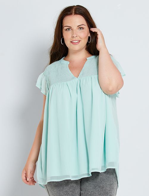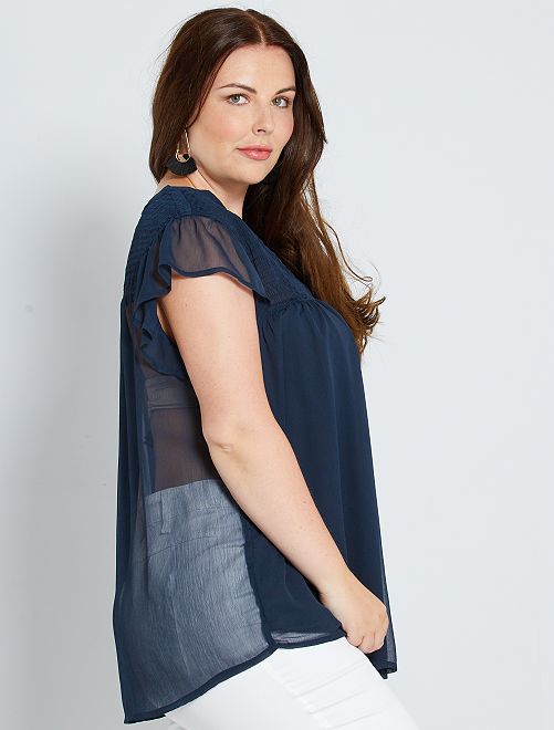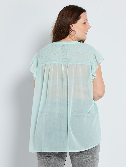 Uma bonita blusa que joga com a transparência para um visual feminino e elegante.