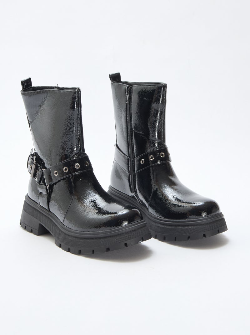 Botas estilo motociclista em verniz liso - Preto