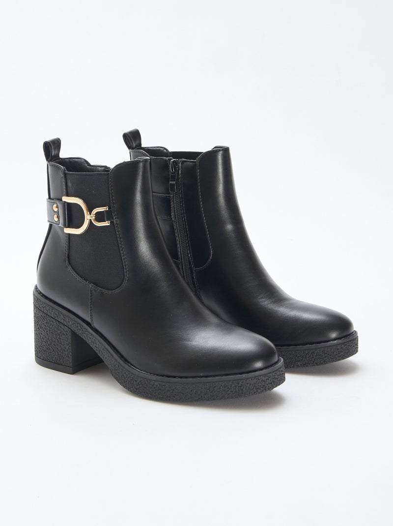Botas modelo Chelsea com tiras de fivela douradas - Preto