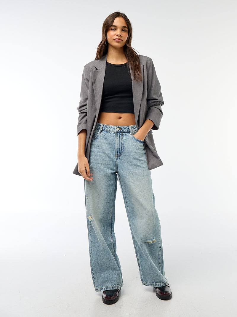 Calças baggy de cintura baixa com 5 bolsos - Azul