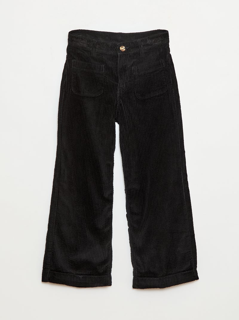 Calças largas de veludo lisas - Preto