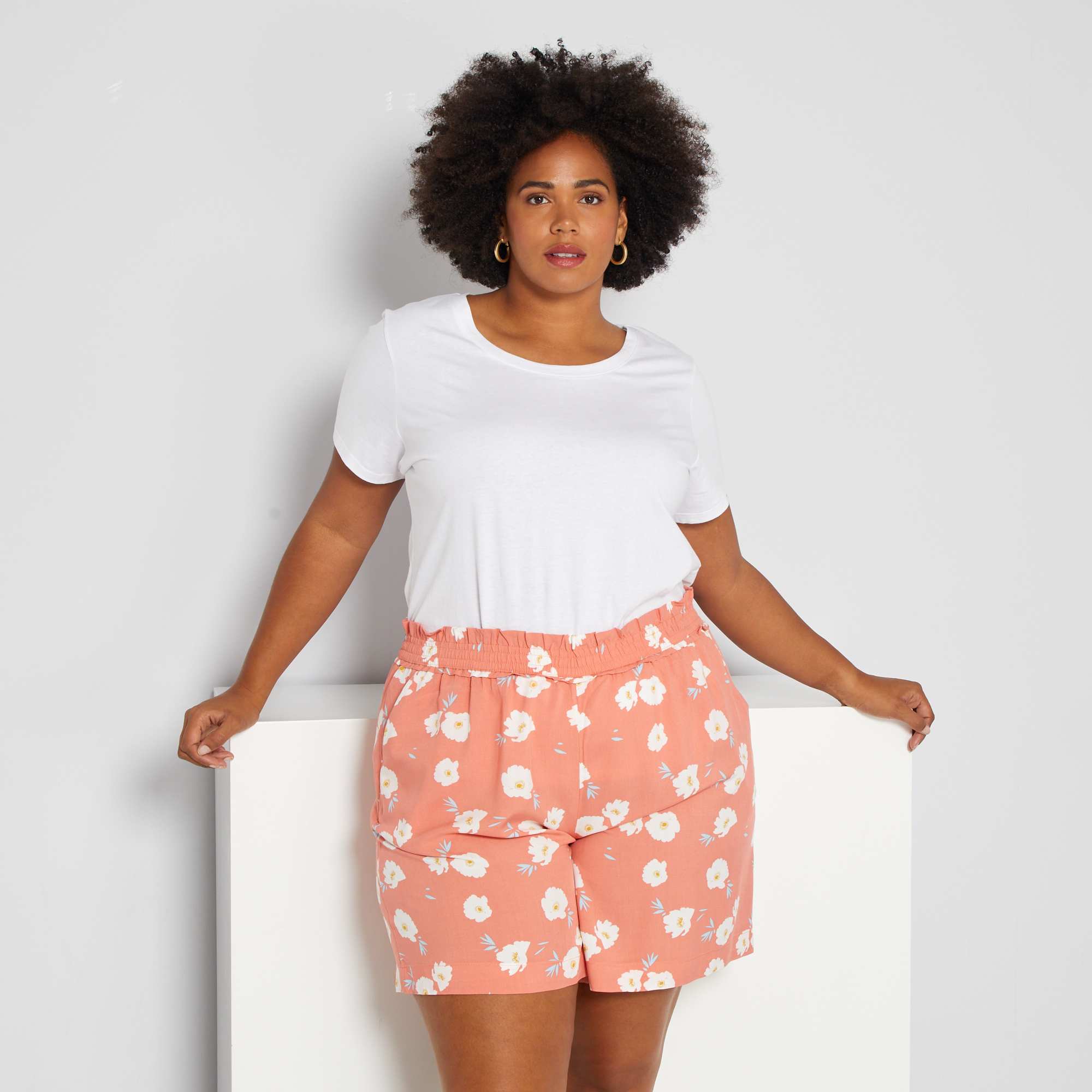 -40% Calções fluidos com estampado 'flores'                                         ROSA