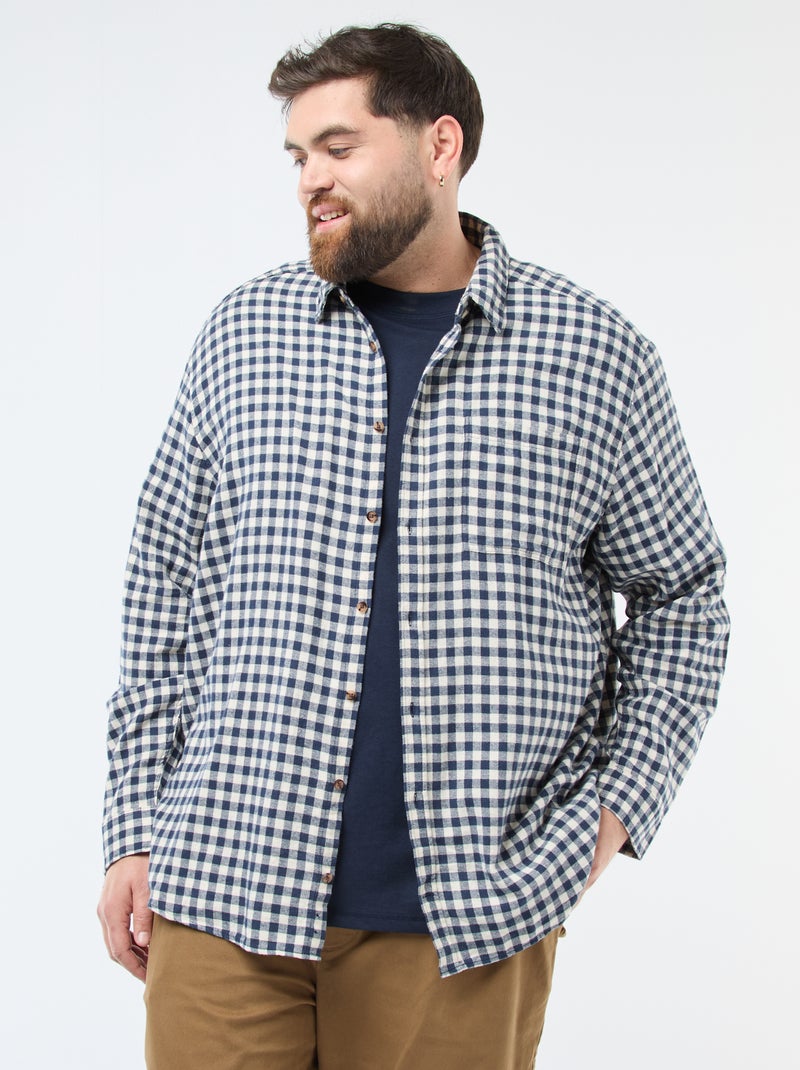 Camisa de flanela de algodão com padrão axadrezado - Azul