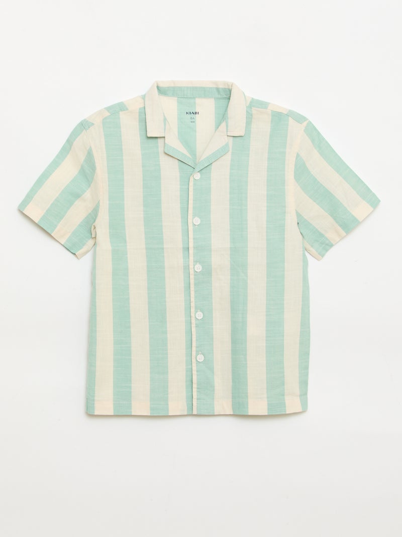 Camisa de manga curta às riscas - Verde