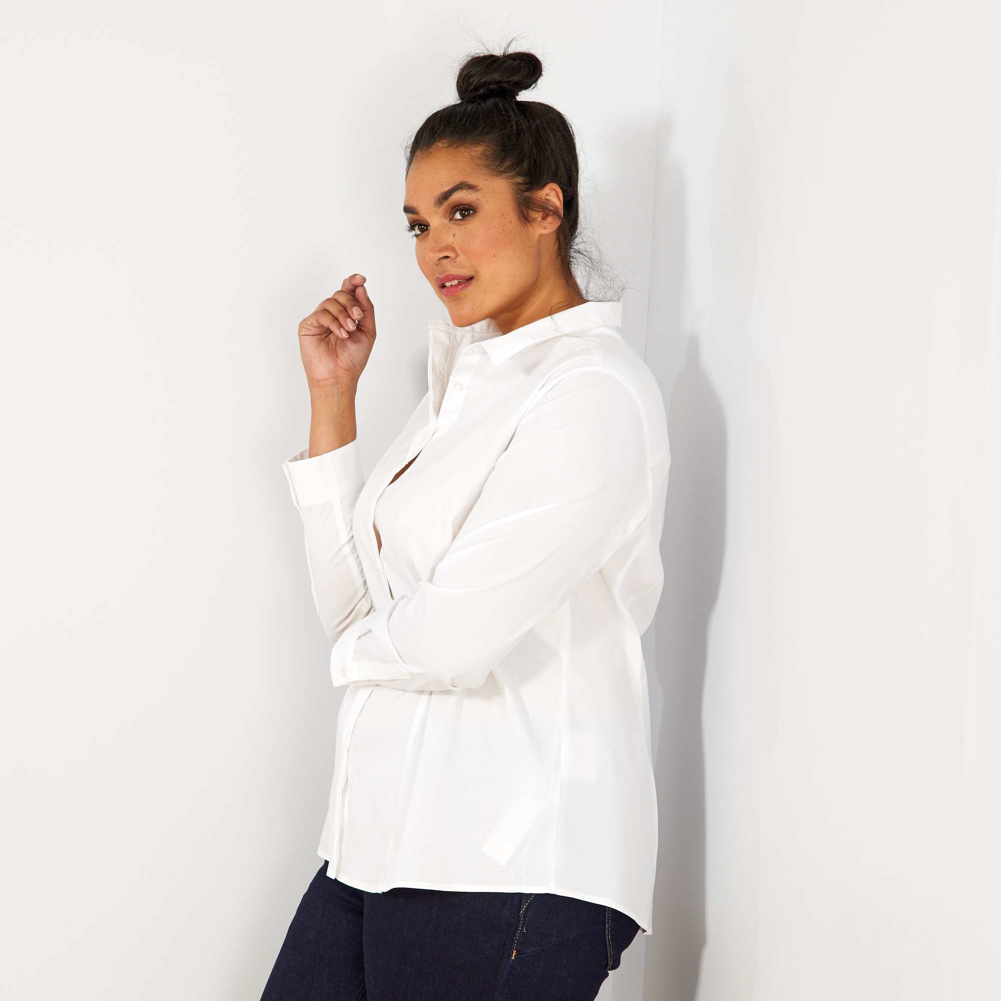 Camisa em popelina elástica - branco
