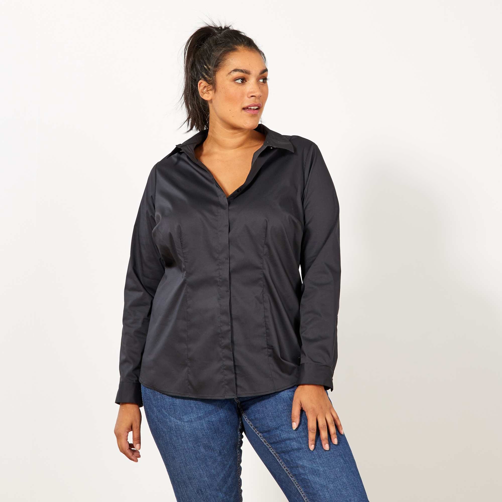 - Camisa em popelina elástica