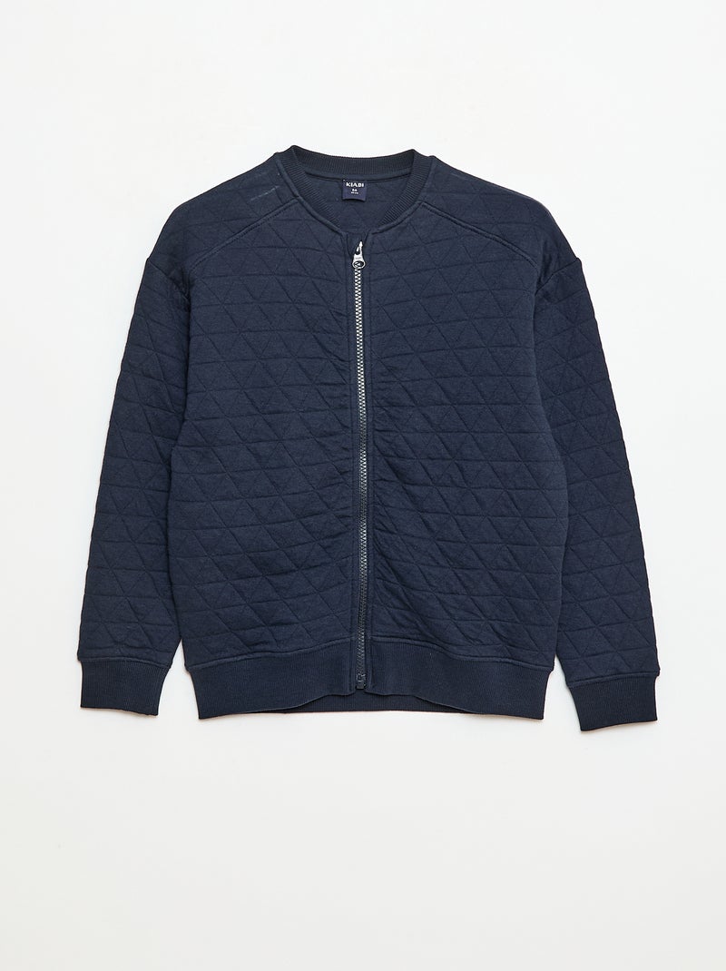 Camisola com fecho de correr acolchoada em algodão lisa - Azul