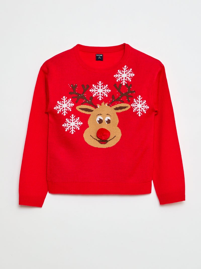 Camisola com impressão de 'cervo' + pompom - Vermelho