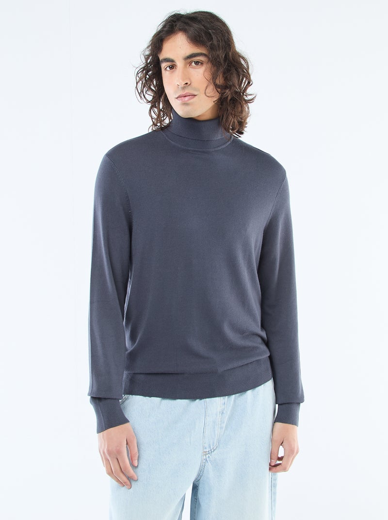 Camisola de gola alta lisa - Azul
