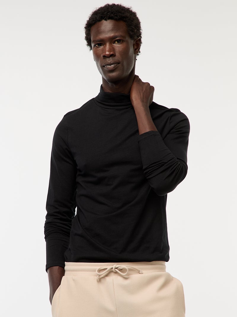 Camisola interior de gola alta lisa - Preto