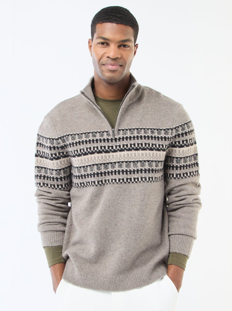 Camisola jacquard gola funil - Bege