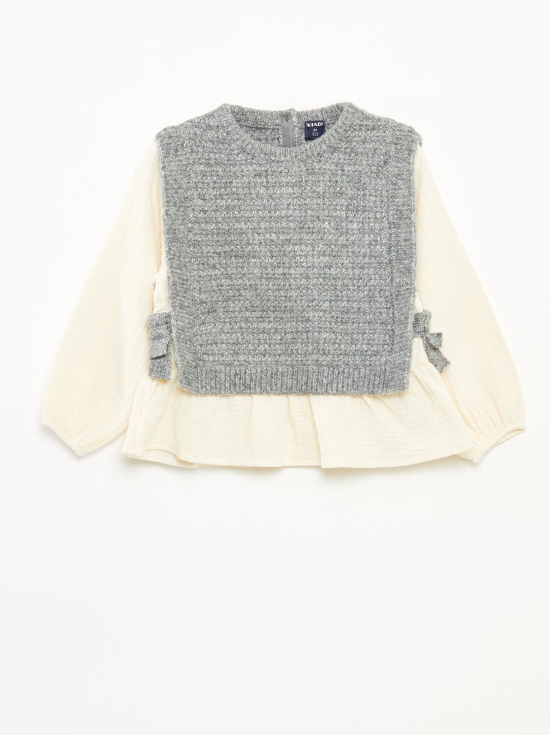 Camisola sem mangas e blusa 2 em 1 - Cinza