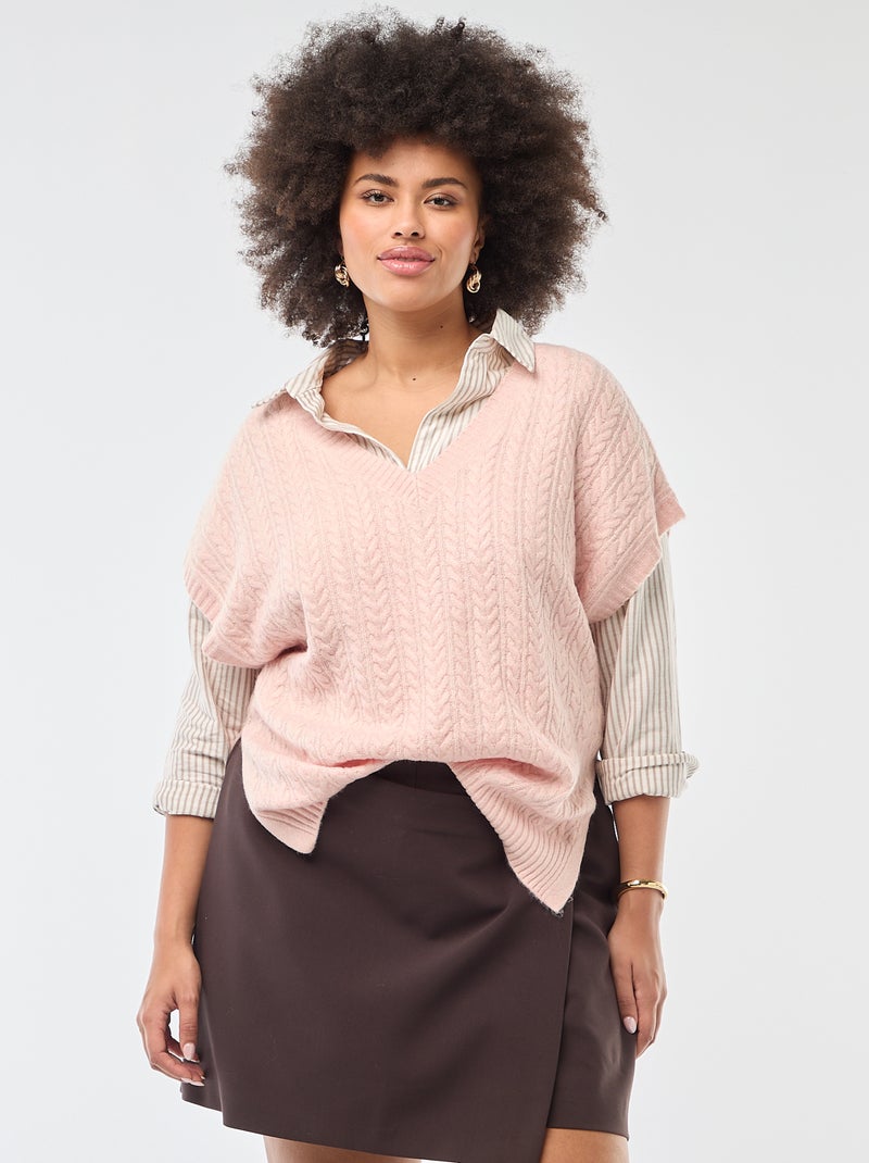 Camisola sem mangas em malha torcida de ponto grosso - Rosa