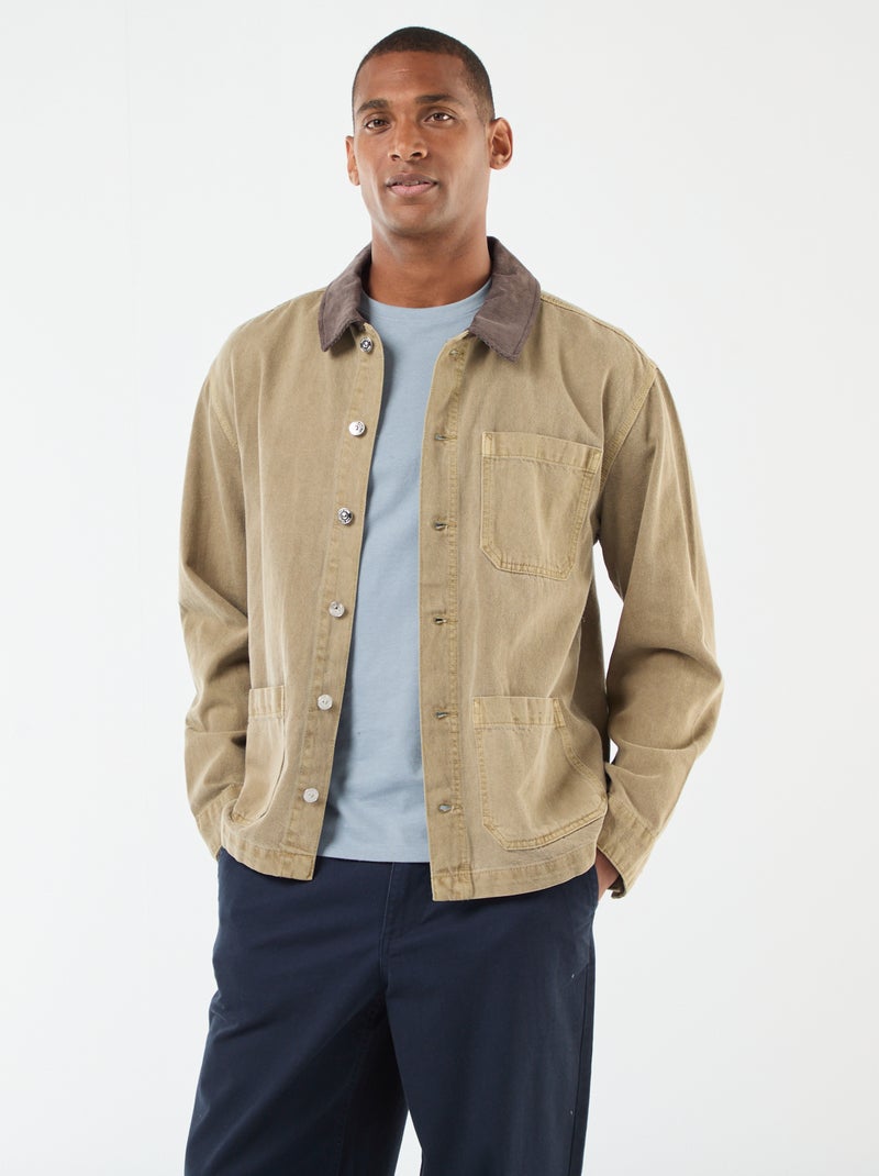 Casaco de ganga com gola em bombazina - Caqui