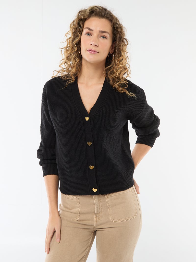 Colete com gola em V e botões de coração - Dia dos Namorados - Preto