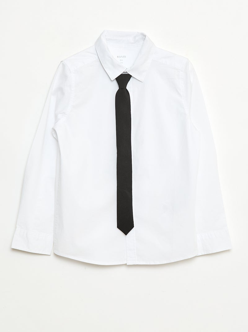 Conjunto Camisa + Gravata em popelina com velcro - 2 peças - Branco
