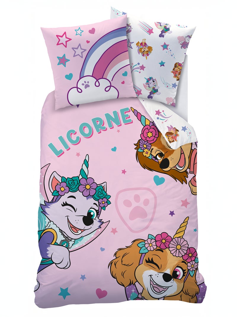 Conjunto de cama 'Patrulha Pata' 2 peças: 1 capa de edredão individual + 1 fronha - Rosa