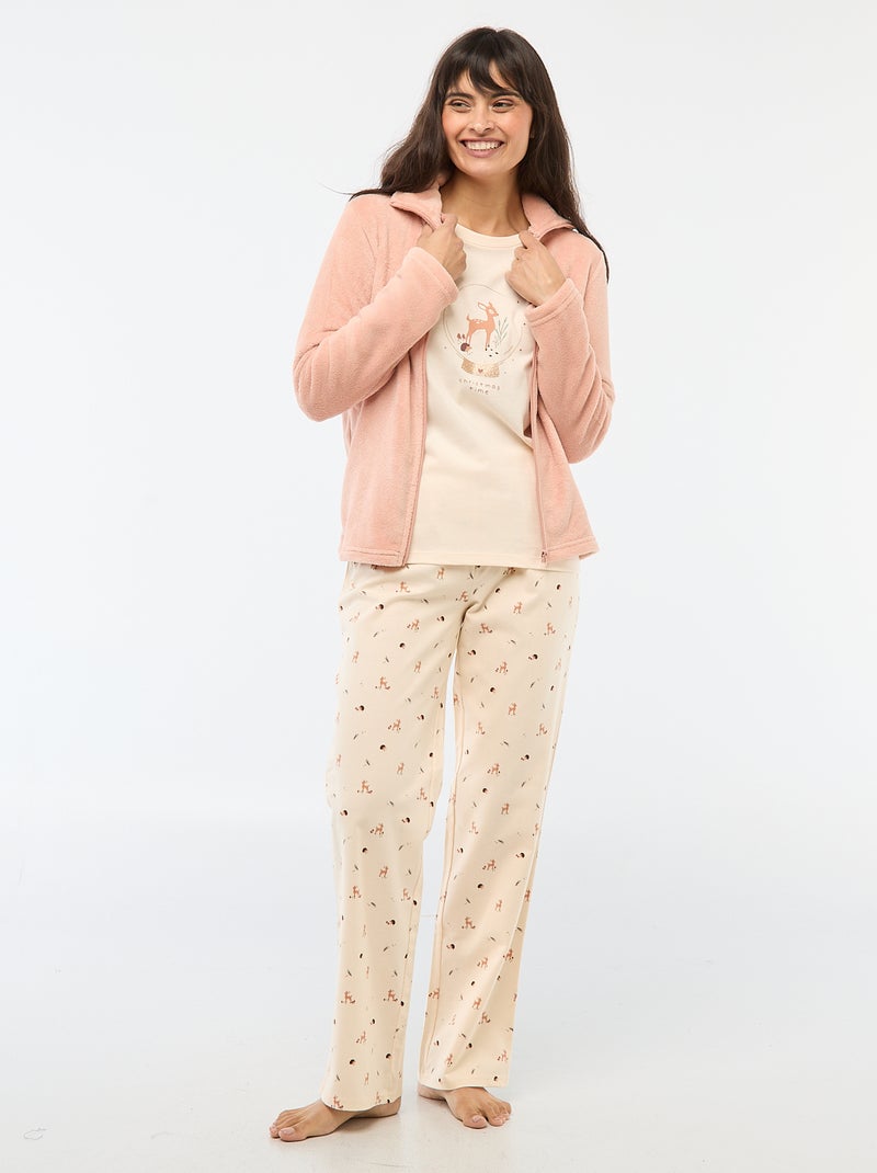 Conjunto de pijama comprido + sweatshirt com fecho de correr em polar - 3 peças - Rosa