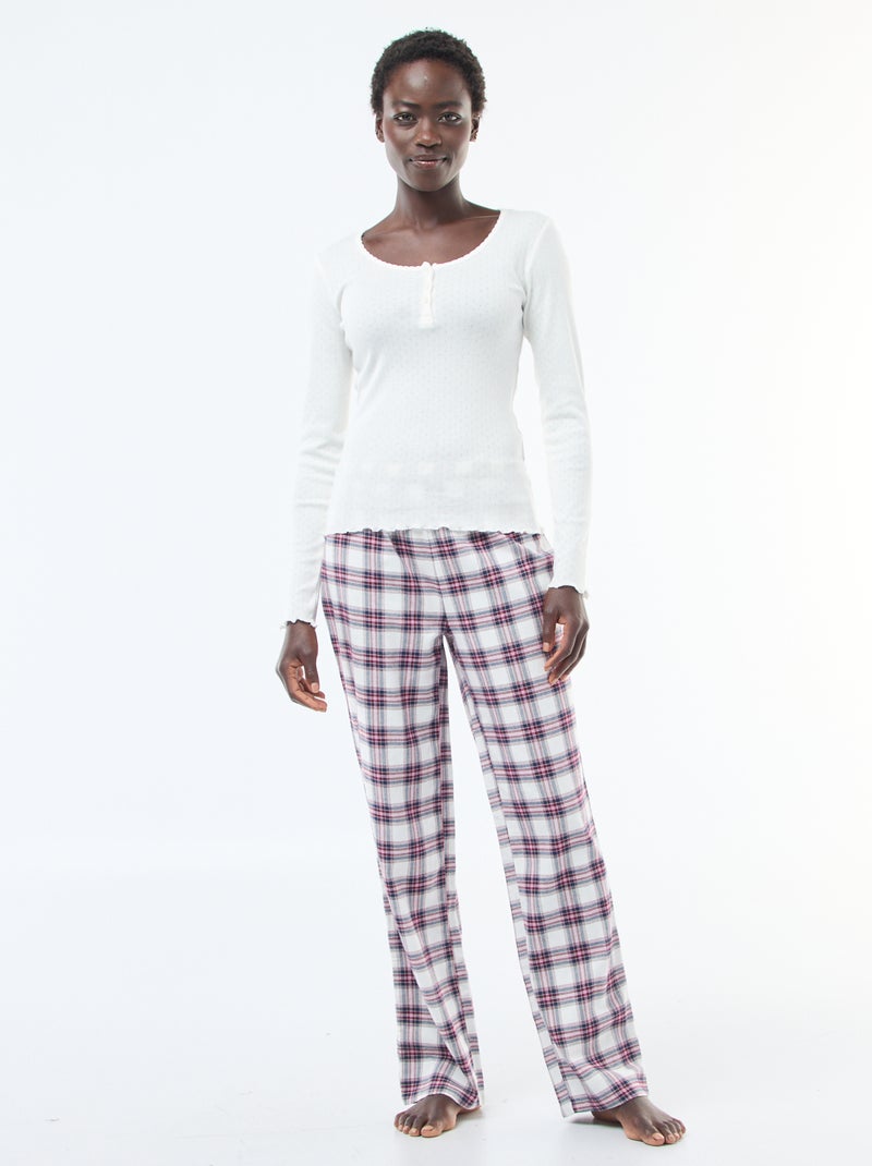 Conjunto de pijama em flanela de algodão - Branco