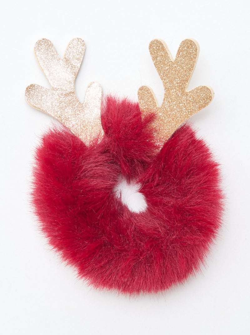 Elástico de cabelo em malha pelúcia com chifres de rena - Vermelho