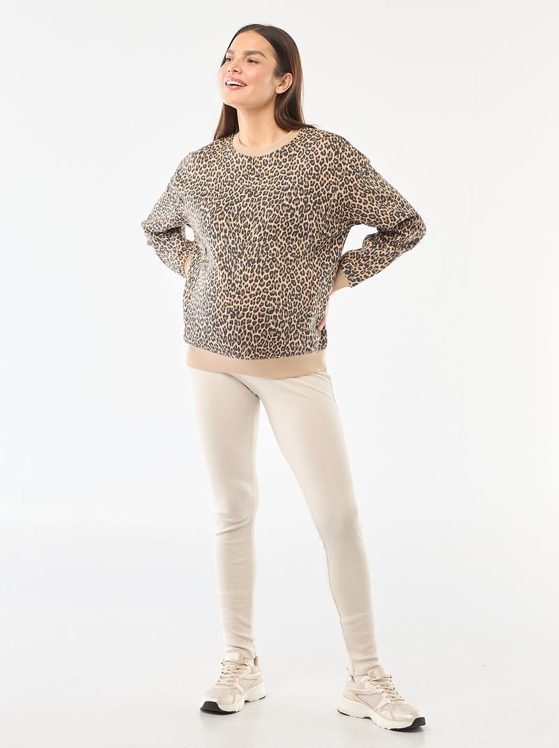 Leggings caneladas de grávida - Beige