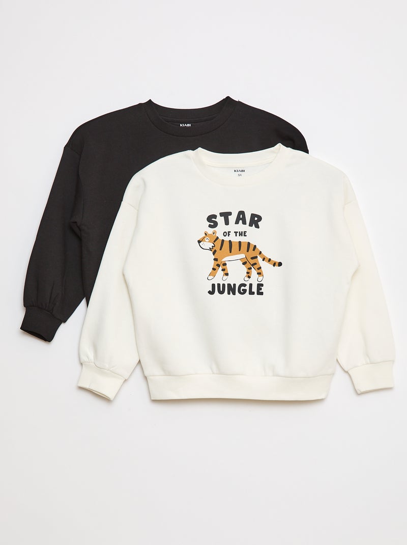 Lote de 2 sweatshirts com gola redonda em moletão cardado - Branco