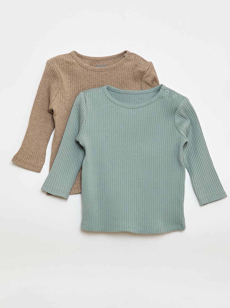 Lote de 2 t-shirts nervuradas de manga comprida - Bege