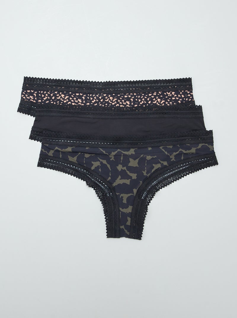 Pack de 3 tangas em microfibra com estampado - PRETO