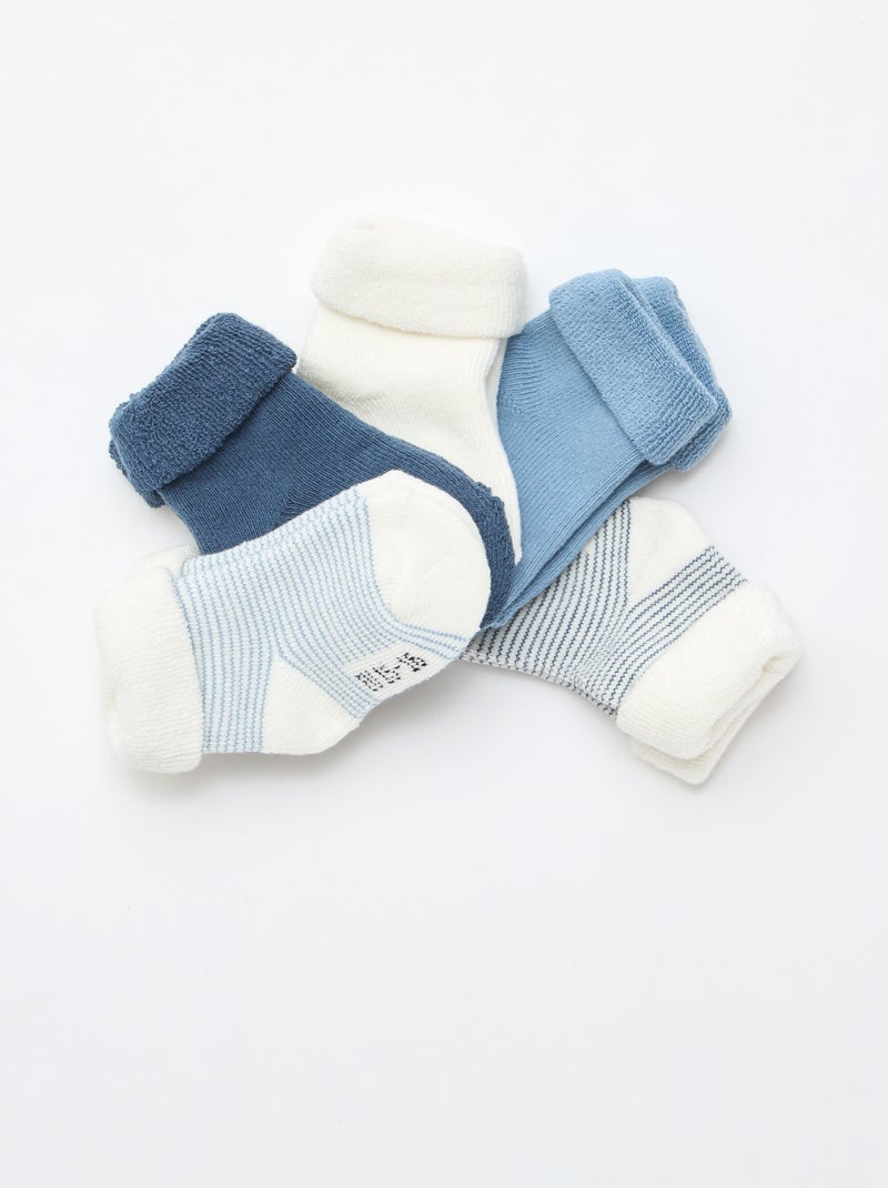 Lote de 5 pares de meias com dobra em algodão - Azul