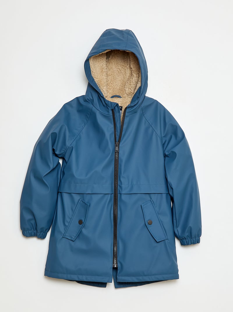 Parka repelente à água com capuz efeito pele de carneiro - Azul
