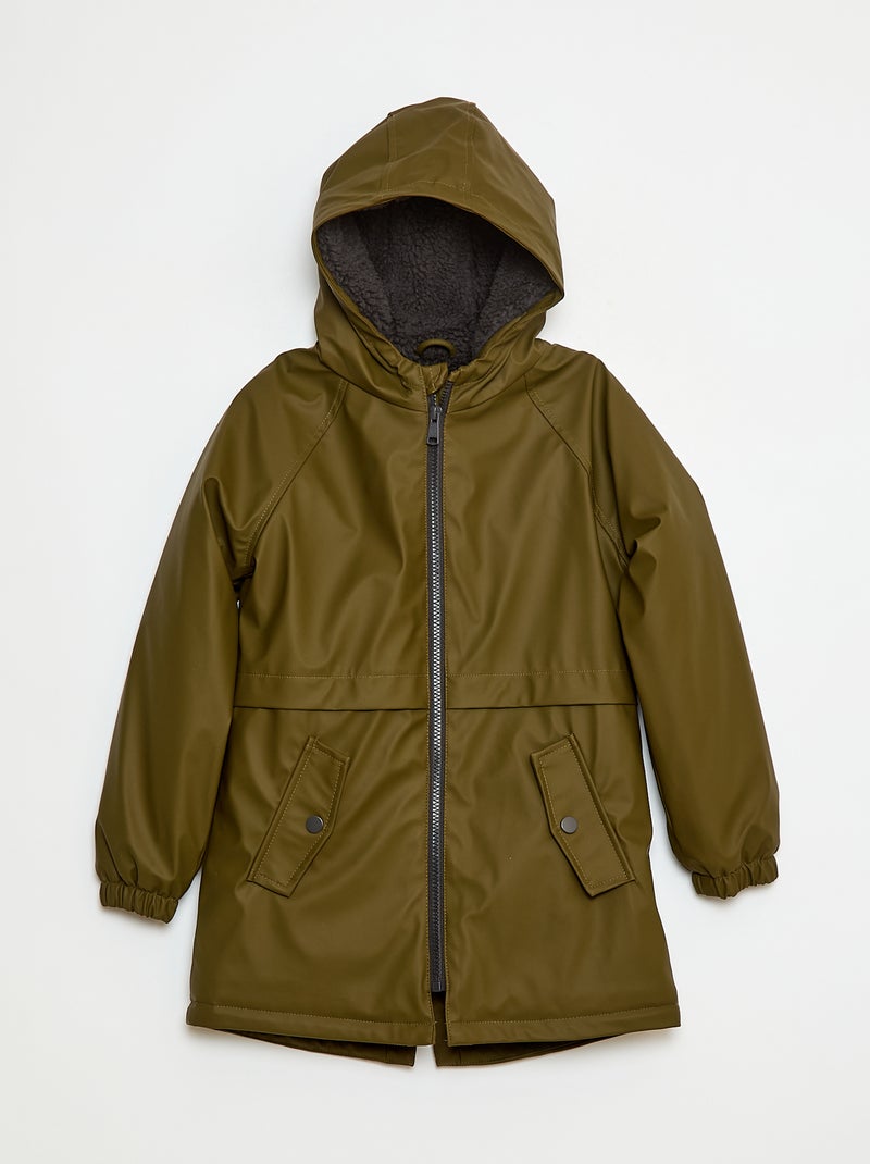 Parka repelente de água com capuz efeito shearling - Verde