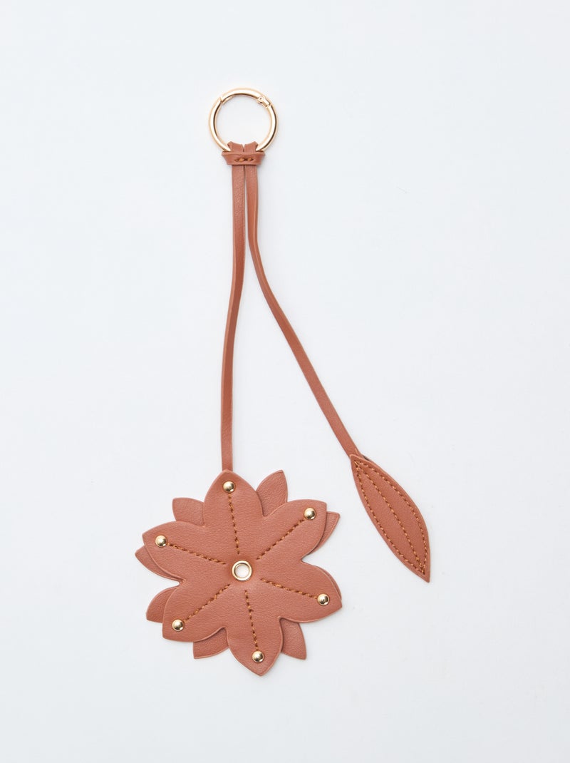 Porta-chaves flor em imitação de couro - Bege