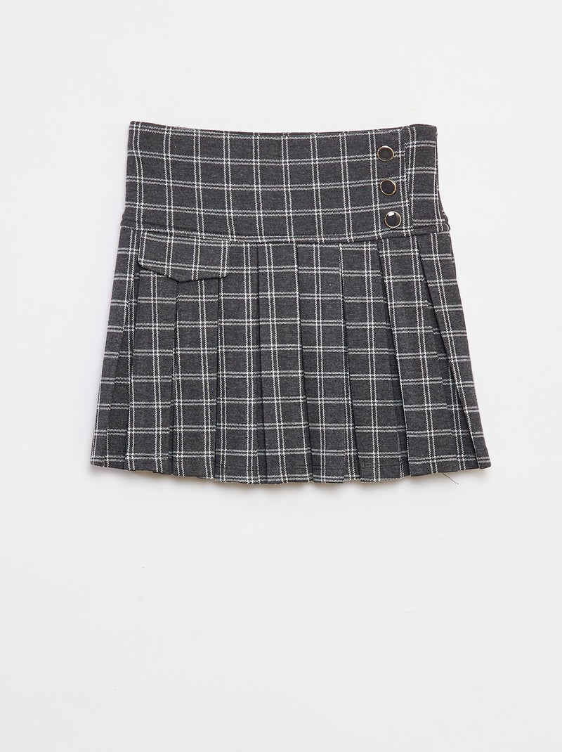 Saia evasé com motivo aos quadrados - Cinza