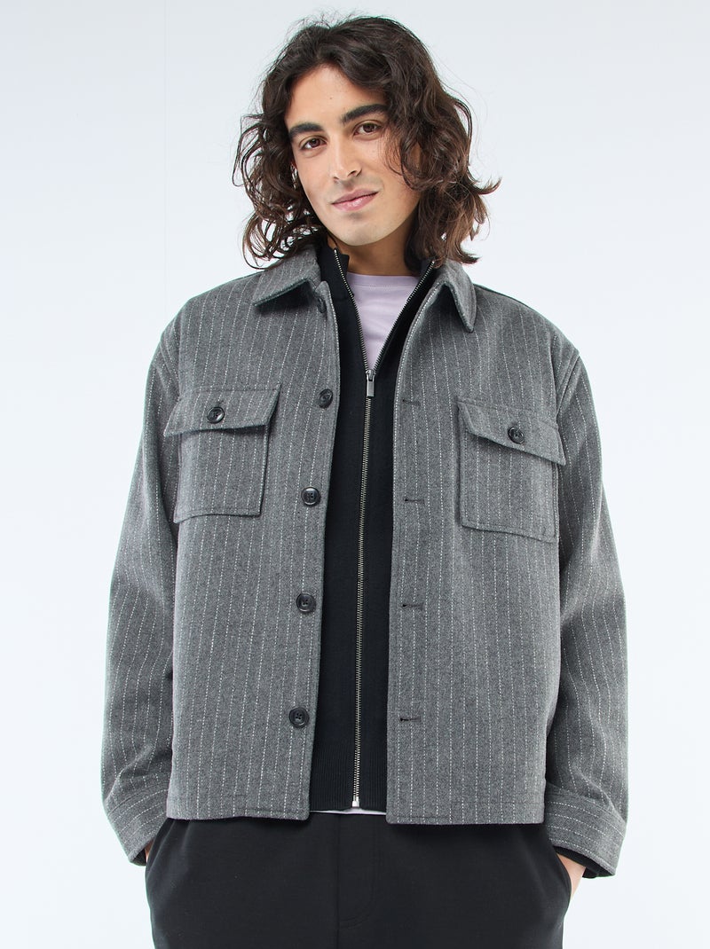 Sobrecamisa quente lisa com bolsos de aba - Cinza