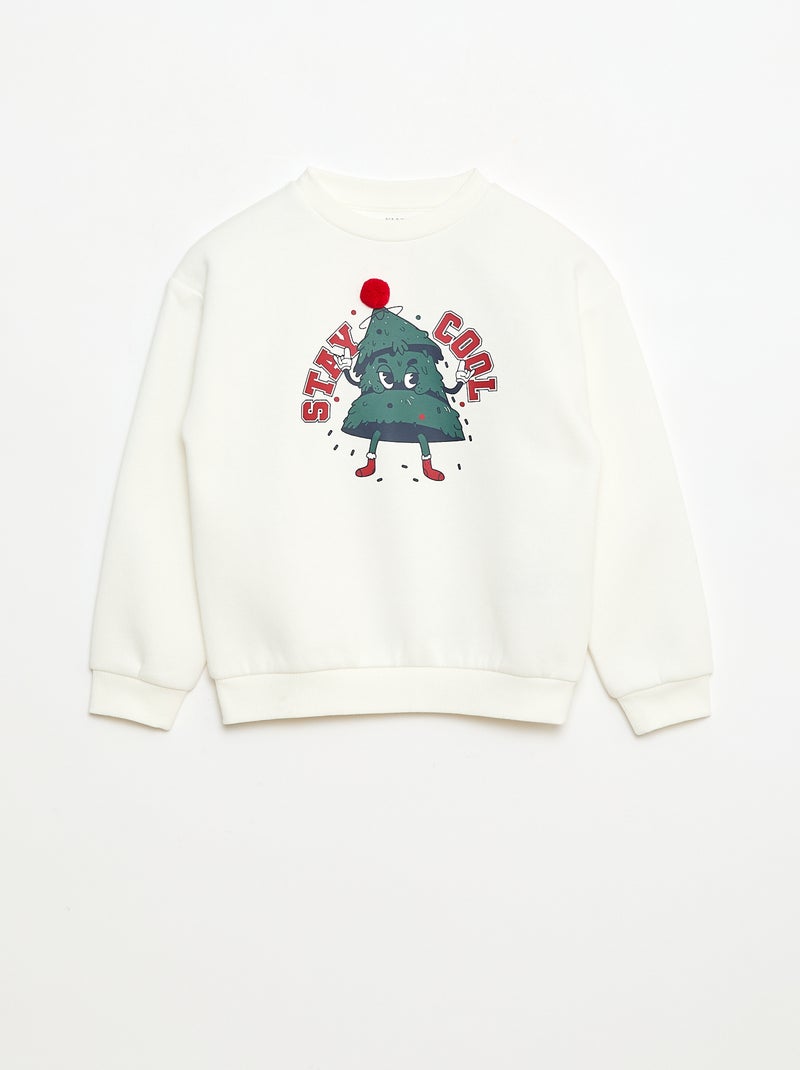 Sweat em moletom estampado Natal - Branco