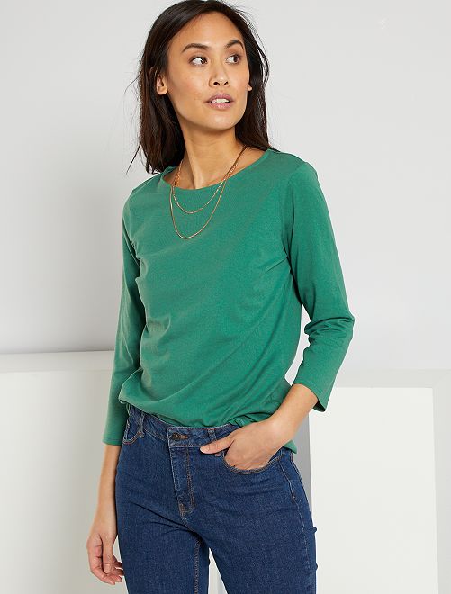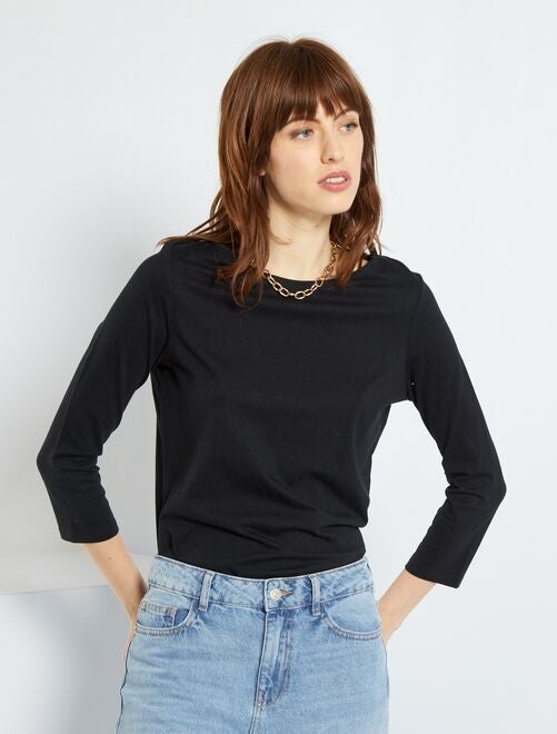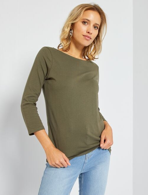 Um básico do guarda-roupa com uma gola em forma de barco.