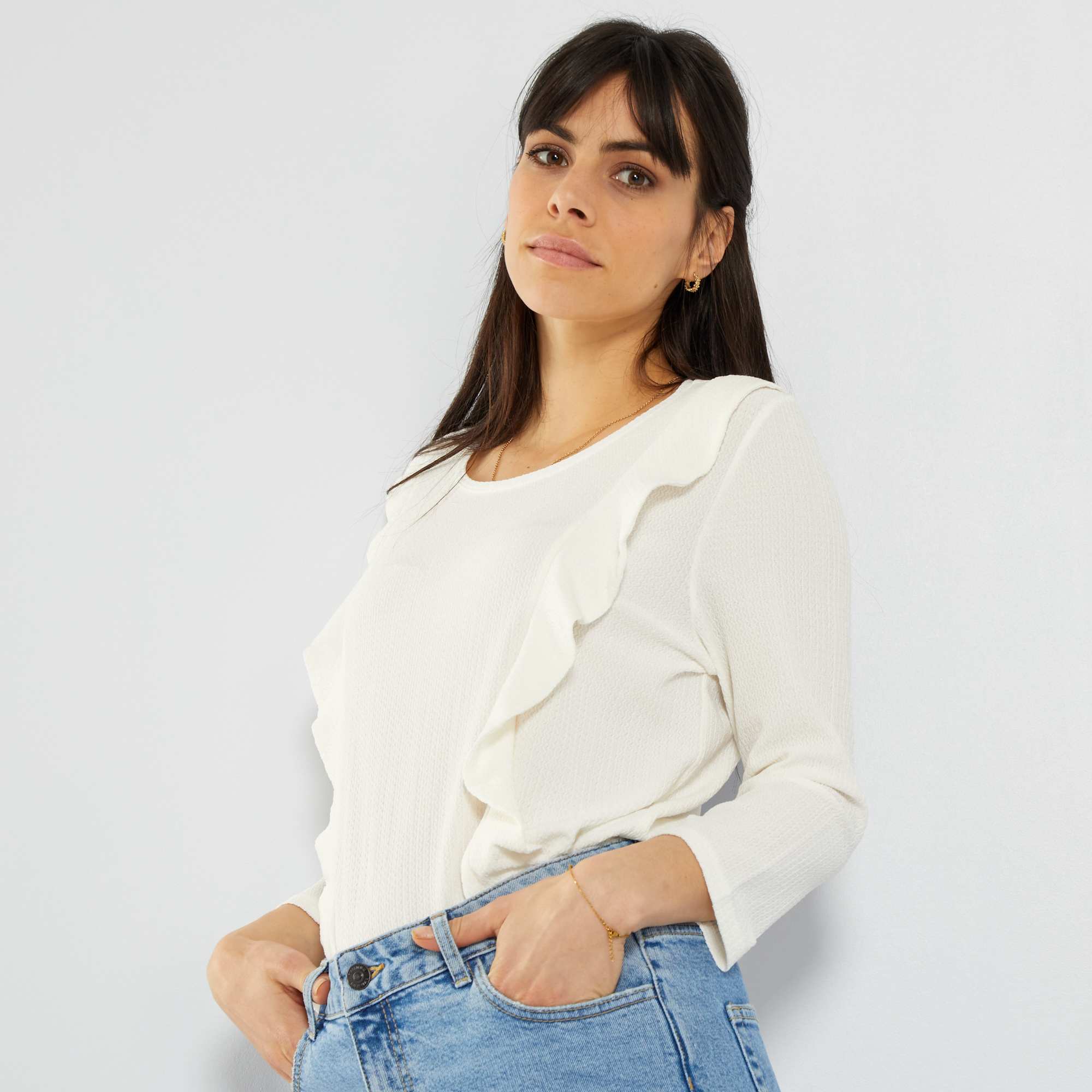 T-shirt com folhos