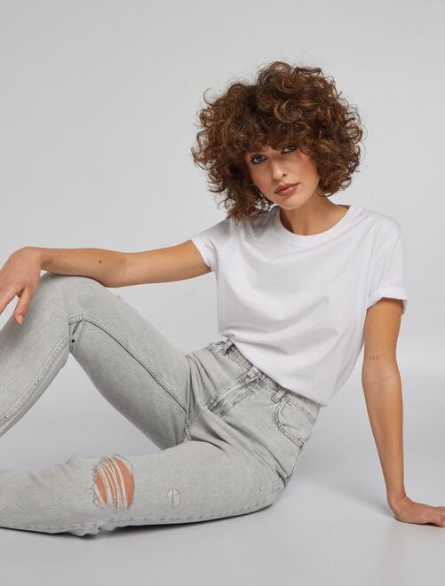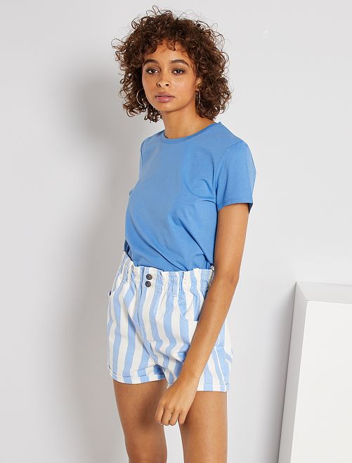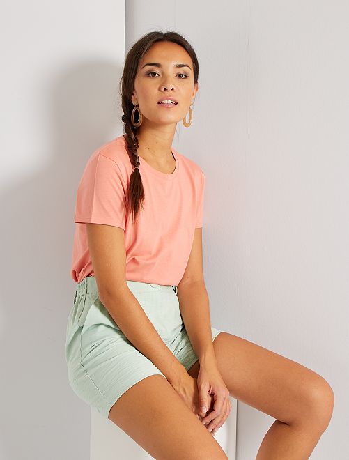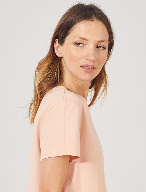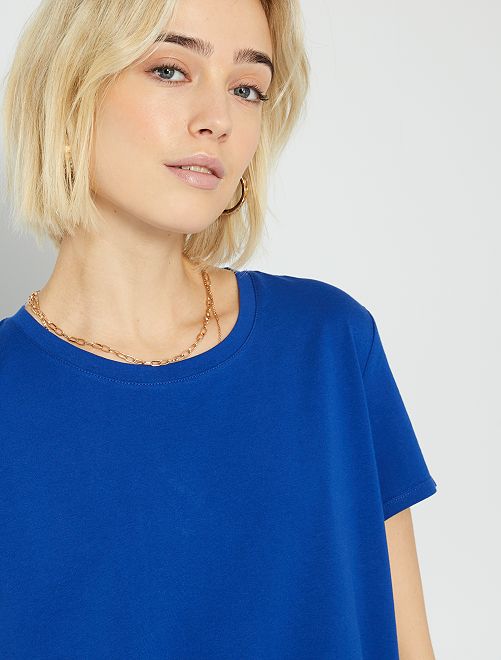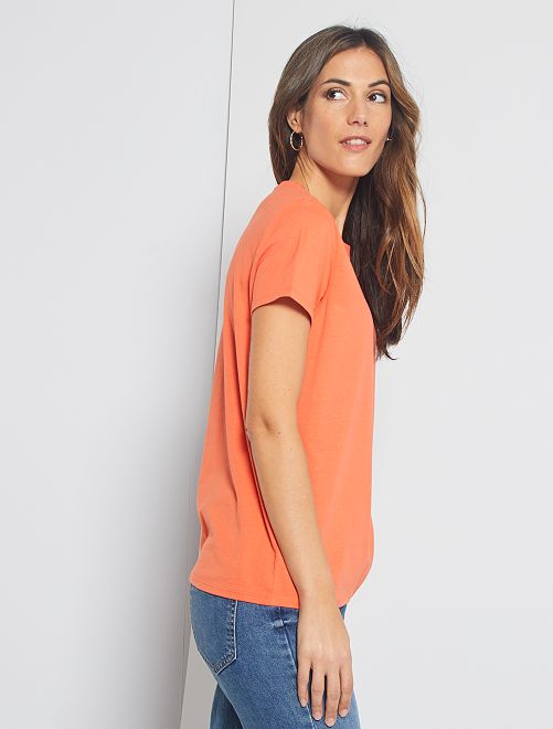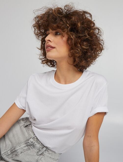 - O nosso modelo veste o tamanho M e mede 1,74 m Com esta nova linha, a Kiabi compromete-se com o estilo ao desenvolver a sua gama 'éco-conception' que se destaca por estar no centro dos desafios ambientais têxteis. Este produto é composto por 100% de fibra de algodão proveniente da agricultura biológica. O algodão biológico é cultivado sem sementes OGM com composto natural que substitui os fertilizantes químicos e os pesticidas. Você também? Ao lavar a roupa a 30 °C ou a frio, também irá acompanhar-nos nesta iniciativa!