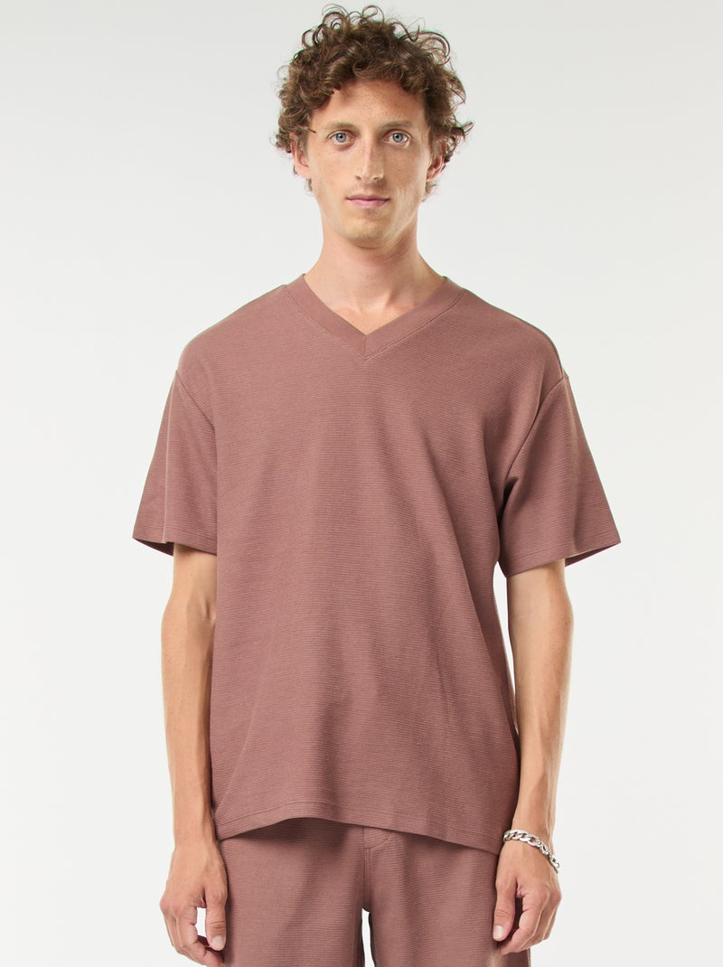 - T-shirt de malha com gola em bico