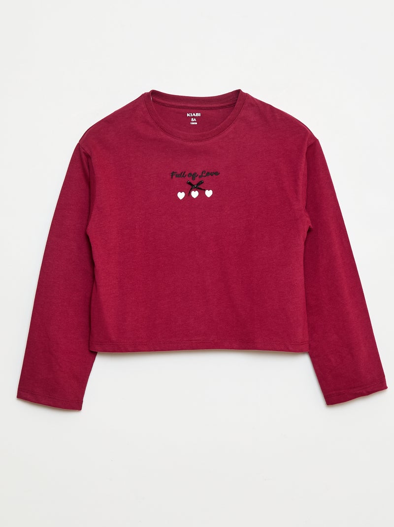 T-shirt de manga comprida bordada - Vermelho