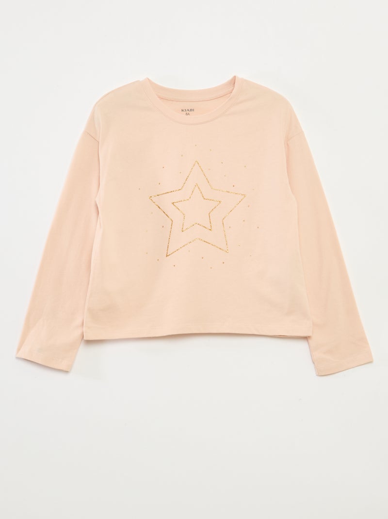T-shirt estampado de mangas compridas - Rosa