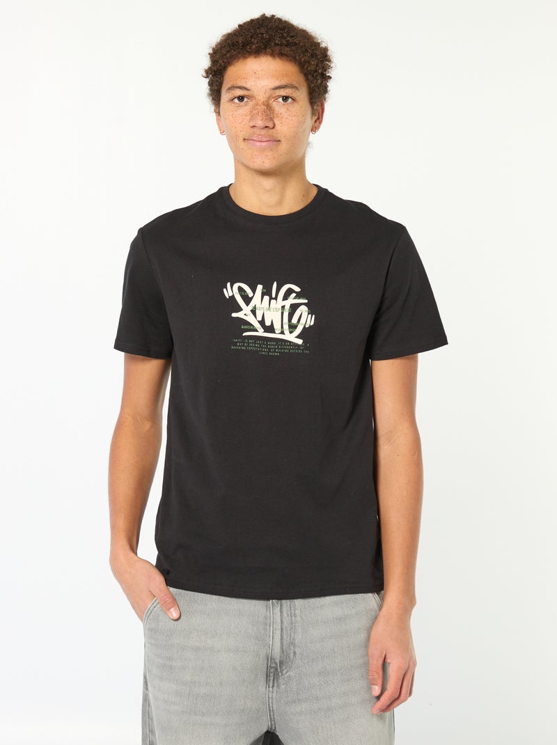T-shirt estampado em algodão liso - Preto