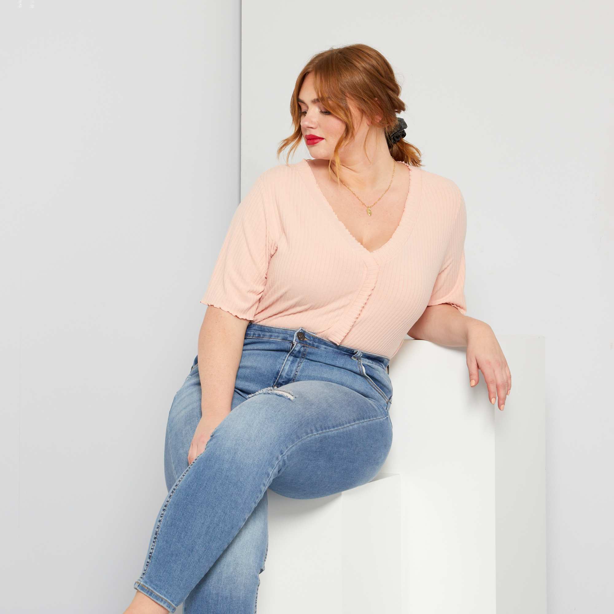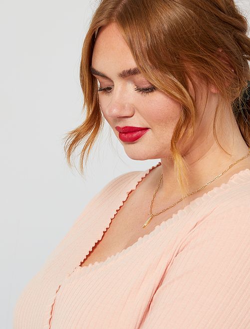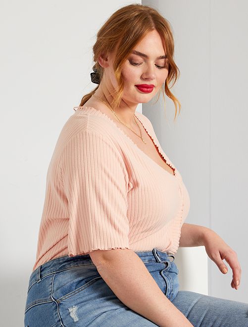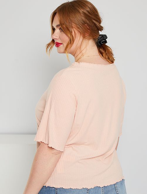 T-shirt nervurada e franzida
