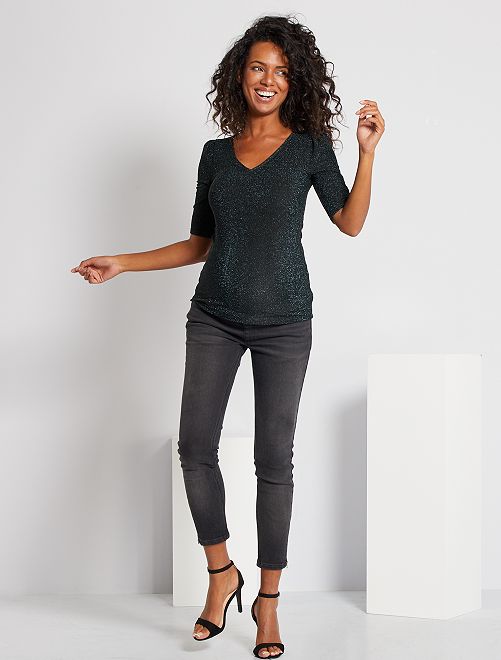 - A nossa modelo veste um tamanho S e mede 1,78 m