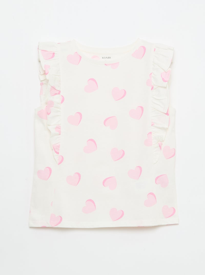 T-shirt sem mangas com folhos - Rosa