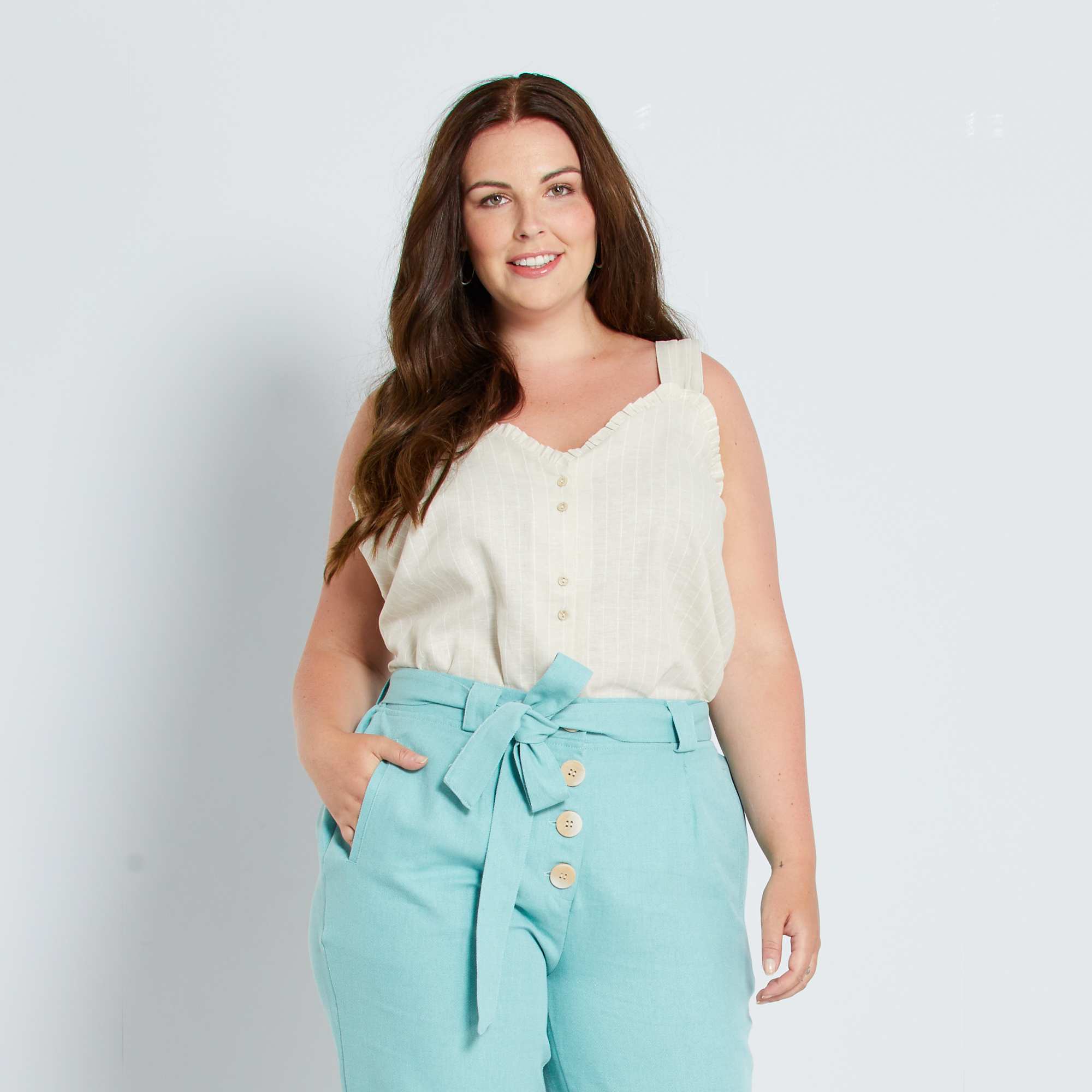 Adoramos a mistura linho/algodão deste top, tão agradável de vestir no verão.
