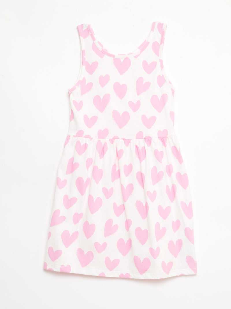 Vestido de malha leve alças finas com padrão integral em algodão - Rosa
